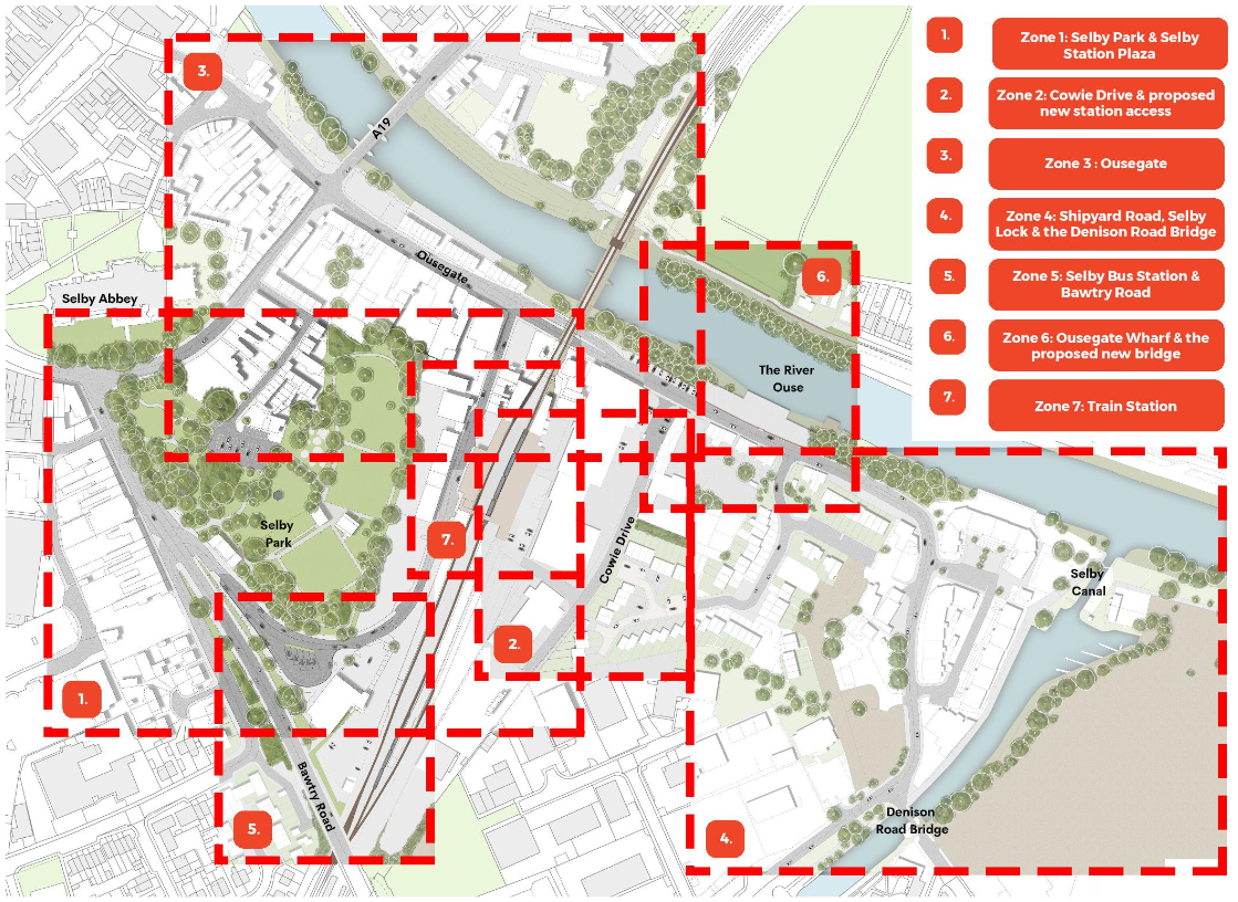 - Zone Six – Ousegate Wharf & the proposed new walking and cycling bridge across the Ouse and linking to Olympia Park